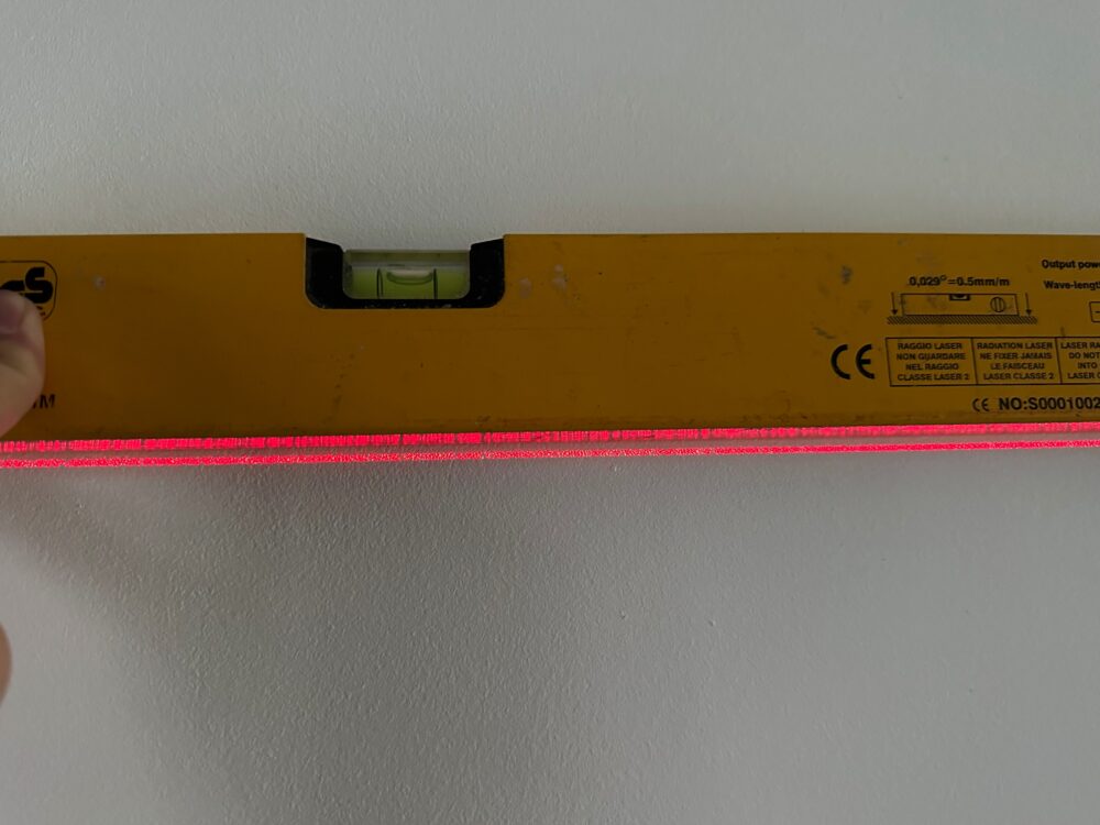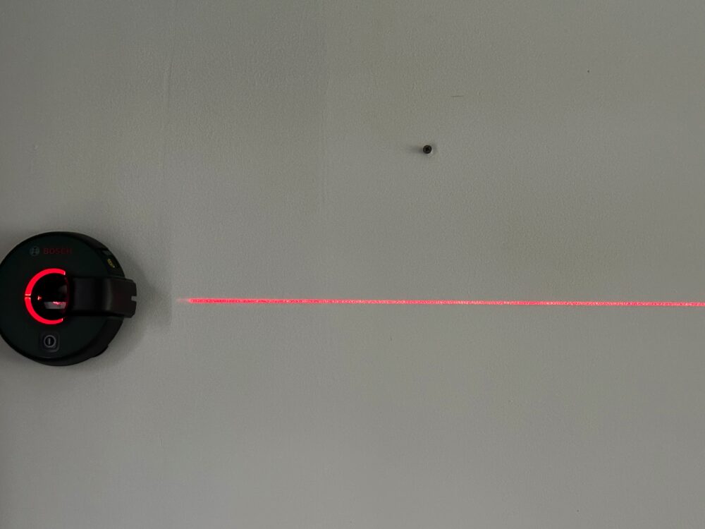 Désolé ce n’est pas facile de faire une photo du laser, mais celui-ci est vraiment puissant et surtout il permet d’avoir un alignement sur une belle longueur.