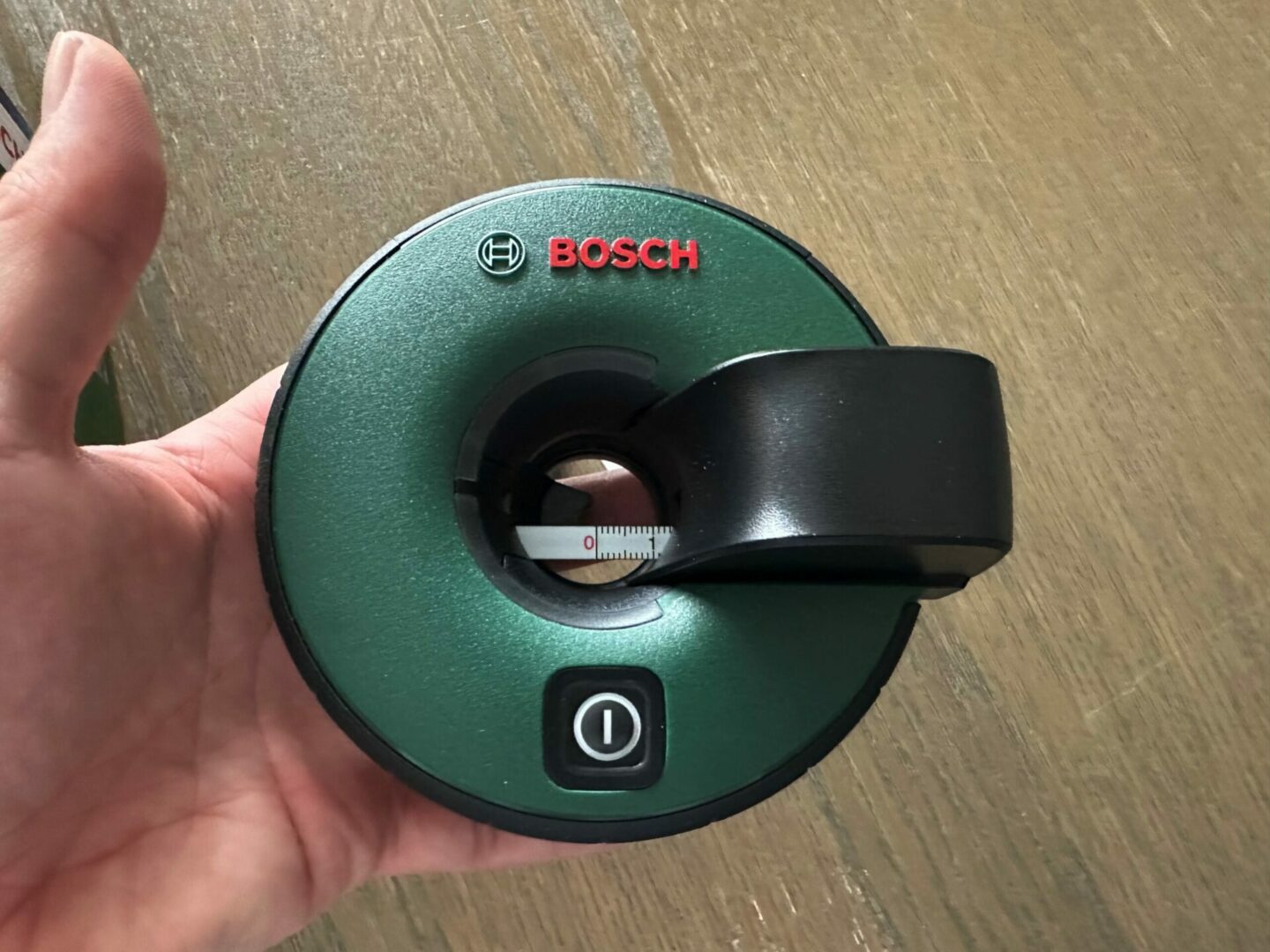Le mètre à ruban est intégré directement à l’Atino, il suffit de tirer dessus pour prendre une mesure.