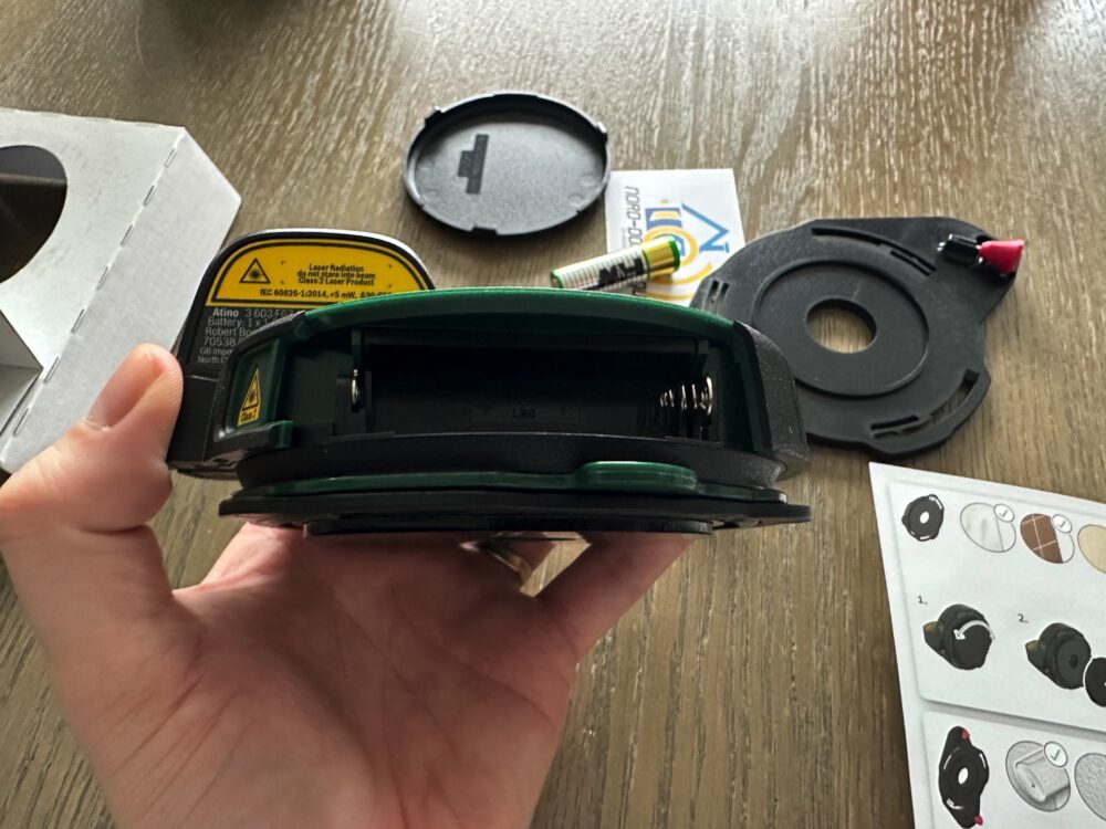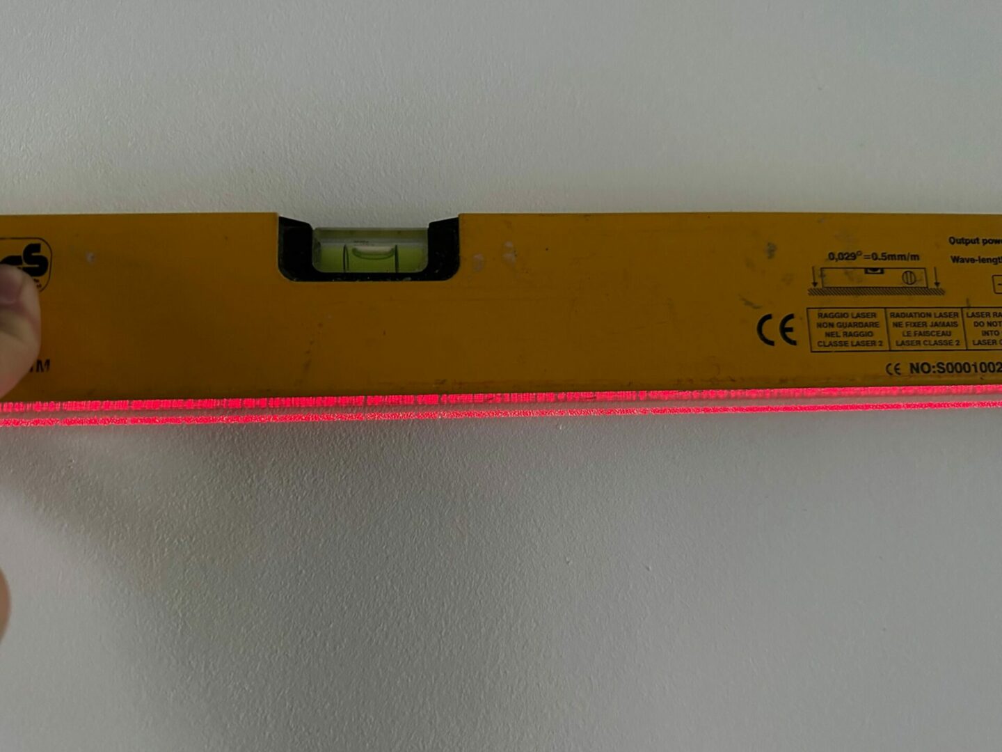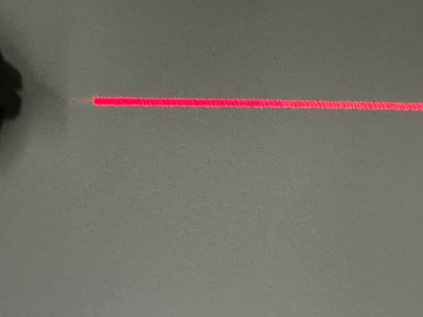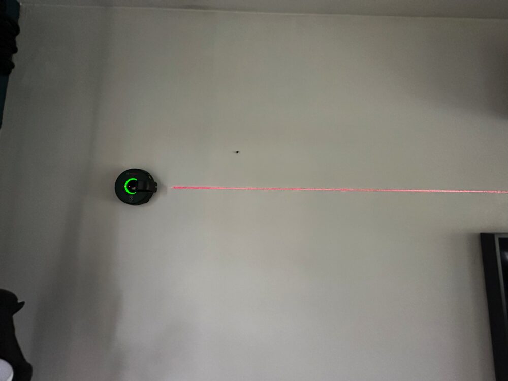 Désolé ce n’est pas facile de faire une photo du laser, mais celui-ci est vraiment puissant et surtout il permet d’avoir un alignement sur une belle longueur.